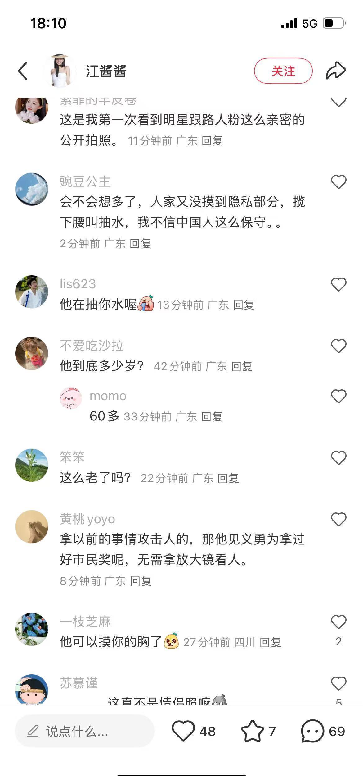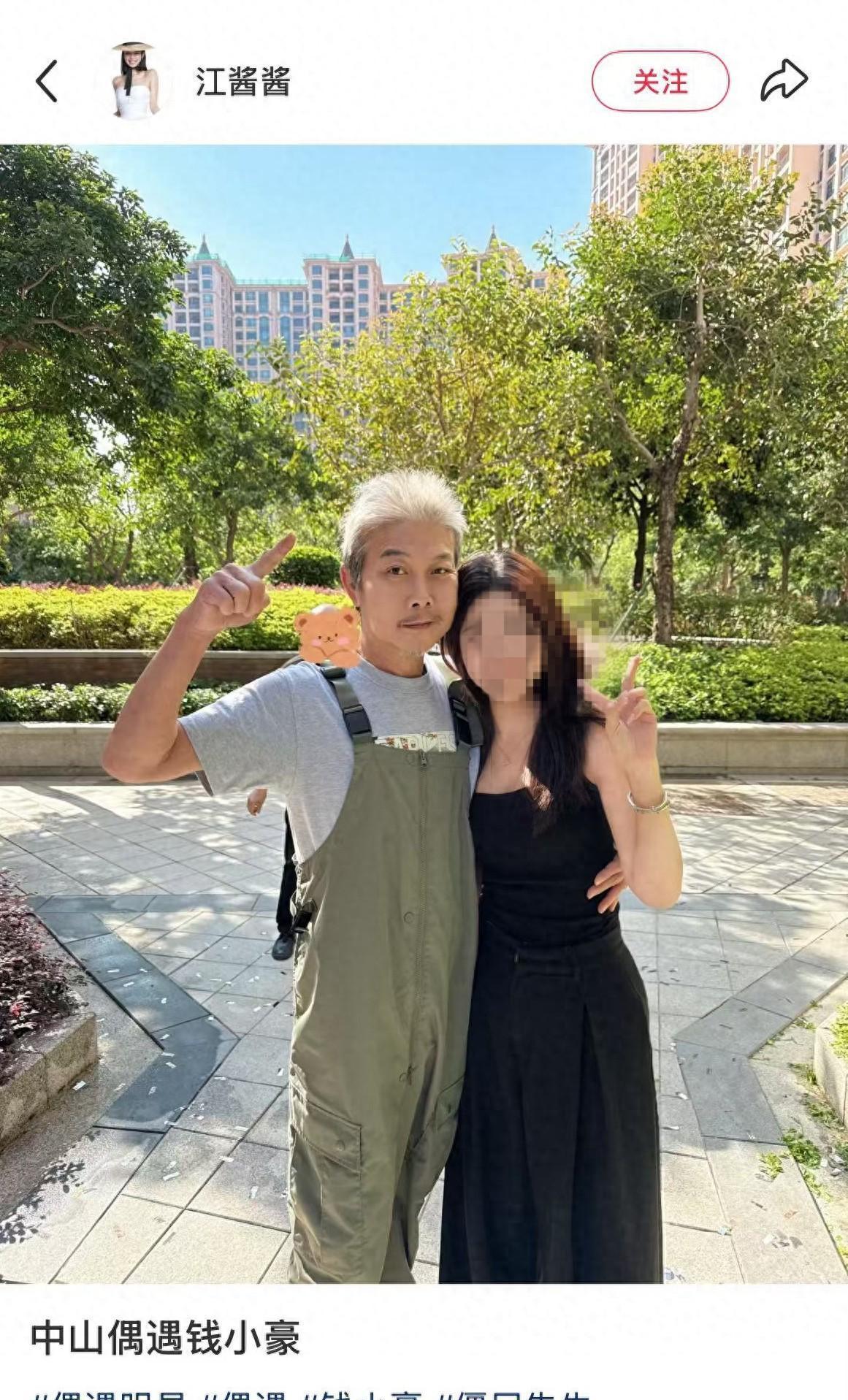 被批合影没边界!62岁钱小豪紧贴高颜值女粉丝,苍老模样惊呆网友 10 月 28 号那天,中山有个女网友逛街时碰到了港星钱小豪,还跟他合了影。不过两人拍照的姿势看着有点亲近,这事儿一出来就引了不少讨论。好多网友都说钱小豪没边界感,跟路人合影居然抱得跟情侣似的,还有人翻出他以前的事儿,说他好多年前因为偷拍女性裙底被控告过。 面对这些议论,钱小豪的朋友出来说,他不是坏人,也不会乱拈花惹草,偷拍那事儿应该是误会。那个女网友也在评论区解释,说自己的手就是自然垂着的,俩人根本没 “抱在一起”。说起来这女网友长得是真漂亮,颜值一点不输女明星,对比之下,钱小豪就显得特别苍老,就算网友发图前用了美颜,也遮不住他的老态。
